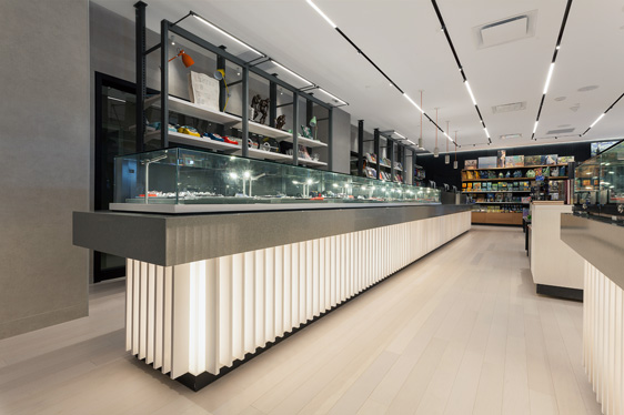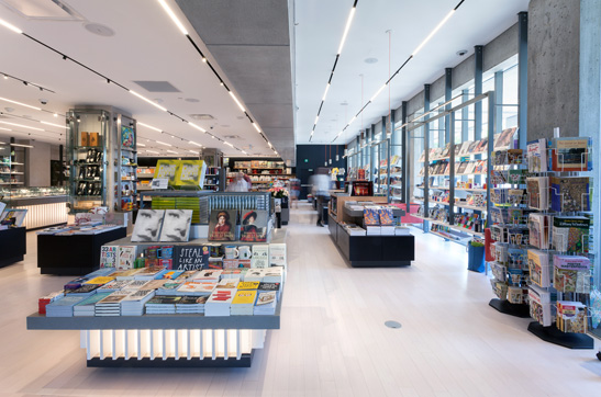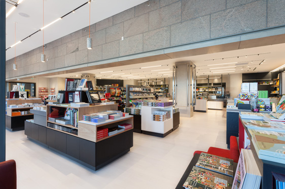 National Gallery of Canada Now, for something entirely different as we cross the Atlantic Ocean to Canada, where the new Gallery Boutique is creating quite a stir in the capital city of Ottawa. In an attempt to showcase a wide variety not only of retail design styles, but also retail disciplines, we turn to an industry that is by its very nature infused with design. Whilst a single gallery or museum shop has minimal impact on consumer spending (it’s not every day you visit your local or national archives) collectively they form a significant sector of our retail mix. The core principle for successful gallery design is to elevate the ordinary to art status. This single idea has become the epitome of countless retail stores across the globe, so it is only fitting that the new Boutique at the National Gallery in Ottawa should be simply stunning. From inexpensive pens and pencils to objects of desire, such as handmade platinum jewellery with ridiculously high price tags, this shop has to allow every product to shine. There is also the added complication of temporary exhibitions and of course new product lines to boot. Lumsden Design has created a work of art for this cultural landmark that was designed by Canada’s most renowned architect, Moshie Safdie, and opened in 1988. The new 306 square metre store takes inspiration from the iconic building’s use of repetitive shapes and strong lines, utilising slabs, concrete finishes, steel structures and plenty of textured timber to echo the wood’s presence throughout the gallery itself. The resulting interior is very well executed. The main entrance to the Boutique is dramatic yet deceptive. It has an intimate feel as its name implies, but once inside the store opens up to reveal a much bolder, open plan retail space full of light. A much more state of the art environment than was initially perceived. Natural daylight floods through the tall windows that reach from the ground to the roof and line one side of the store. A shelving unit comprised of an open steel structure with metal shelves fills the windows yet enables the light to filter in and around. The ceiling is far higher on this side of the store and allows pendant lights to be hung, which add interest and a hint of colour to the otherwise neutral toned interior. Further splashes of colour are found in the seating and a small postcard display rack that is discretely tucked into a corner of the store; they convey the red on the National Gallery logo. Large, concrete tiles that line the wall where the ceiling changes height add another textural layer to the concept and provide the perfect backdrop for the delicate pendant shades and their vivid wires. A 10.5 metre long counter displays jewellery and doubles as the cash and wrap desk makes a formidable feature within this serene store. It runs parallel to the window on the opposite side of the shop; a thick slab of grey sits atop an internally lit base that is formed of hundreds of vertical timber thins. Further display tables following this design are positioned together with white stained Canadian maple and black and white American oak display tables. All of the mid floor cabinetry is relatively low, angular in design and used mostly for displaying the Gallery’s extensive collection of literature. A couple of structural pillars interject the space and are clad with steel racks for displaying accessories and smaller merchandise. The merchandising system is bespoke and was specified for its versatility and adaptability; the wall units, shelving and furniture islands can all be unclipped to be reconfigured for new product lines and exhibition launches. This new store is very well thought out and adapted, not just for those visiting the museum, but for the population of Ottawa seeking a gift for others or a treat for themselves. It has become a destination in its own right full of creativity and flair. |