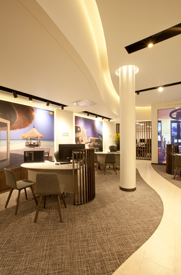 Trailfinders, London In recent years we have finally seen the travel market play catch up with the rest of the high street and rightly so. Considering the amazing places and diverse cultures waiting to be explored across the globe, travel agent outlets do not always showcase their destinations to the full extent. As with all other areas of retail, travel agents have been hit hard by the internet and it has been a case of survival of the fittest. The worldwide web has encroached and developed on the traditional travel agent format: - it offers a plethora of competitively priced holidays, a selection of brokers to help you secure an even leaner price and direct access to airlines, including the cheap ones. Plus, you can surf for inspiration, get reviews on the best hotels and educate yourself on all aspects related to your overseas vacation. Never has there been a more opportune time to devise a new retail offer to seduce consumers into booking their dream package instore; which is exactly what worldwide travel leader, Trailfinders, has just done. Design agency, LustedGreen developed an exceptional concept for its two Kensington High Street stores – the Travel Centre and the Premium Travel and Cruise branch. Starting with the Travel Centre, the open plan layout is based on big, bold and colourful imagery to convey the excitement and anticipation of travel. There are digital screens to promote the various destinations on offer and a curved path to lead you around the store and add a sense of adventure. As an avid traveller myself – well, who doesn’t like an exotic holiday or two - I love the new format. The large graphics take in exotic animals, idyllic beaches, iconic natural wonders and an enormous map of the world – such a simple and effective solution. The entire store is bright, open and welcoming. There is nothing in the window to obscure your view of the interior and its seductive glossy images. Washed oak brings muted warmth to the uncluttered interior and is used as a theme throughout the space. The numerous, individual sales desks, rather than being in straight lines, follow the curved path. Desks are curved themselves and partially screened to provide a degree of personalisation – which this tour operator prides itself on. It really is a revelation in travel retail. Across the road from this store, a more exclusive feel has been applied for the Premium Travel and Cruise offer. Using a very similar format and arrangement as the Travel Centre, the interior of this luxury holiday agency is enhanced with a richer palette of dark-stained ash, neutral stone and grey tones. A deliberately warmer and more focused lighting scheme combines concealed LED lights washing over surfaces with pools of spotlighting. The new store also provides a hospitality bar for serving tea and coffee to clients. As in the previous store the individual rounded desks are partially screened and trace the line of a curved path. Large format graphics depicting sensational places fill one side of the branch, whilst multiple 55 inch LCD screens that showcase the premium offer are mounted and line the opposite wall. At the rear of the store an administration area is screened off with full height timber slatted screens, and separated by a large back-lit graphic of a hotel. Trailfinders Premium Travel and Cruise branch is an altogether more prestigious store that specifically reflects the high standards of luxury and comfort clients would experience in first and business class lounges and 5 star hotels. It is the perfect start to your holiday! In fact both of these new concepts stimulate your senses and are a real pleasure to visit. Photography credit for Trailfinders - Liz Artindale (Premium travel photos) and John Dockeray (Worldwide Travel Centre photos). |