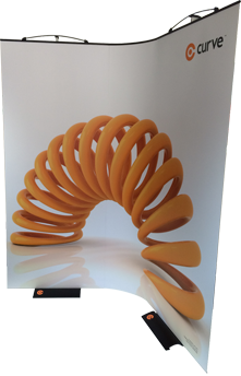 New CURVE display system Eve Products Limited, manufacturers of the TWIST, LUMOS and CONNECT exhibition products is proud to announce the release of their new CURVE display system. Manufactured and assembled in the UK, the standard 3 panel kit comprises of two individual stands 2060 x 850mm and a flexible panel 2060 x 425mm, with optional integrated LED lighting. CURVE is transported in just one bespoke bag with a total weight including graphics of only 12 kilos. All standard CURVE kits as with the TWIST, have the option to seamlessly link to other CURVE kits creating almost limitless configurations and flexibility. Using their patented levelling system to alleviate issues of uneven floors and a new locating base system available in either black or white finishes, Eve Products believe CURVE is going to be an exciting new chapter within the modular display market.