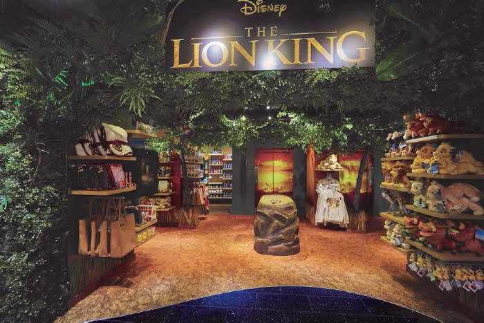 with The Lion King soft toys, merchandise and gifts with grasses growing underneath fittings and leaves above fixtures also contributing to the immersive shopping experience, look and feel. A delightful shopping
