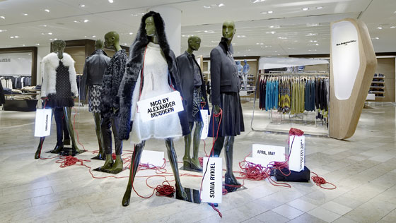 Shopfittings, shelving and other display equipment follow suit. Beauty and accessories is opulent with predominantly black and gold perimeter units together with marble topped, mirrored display tables. In mens formalwear wall and freestanding units are mostly dark wood and black with angular, metal hanging rails, whereas mens casual and fashionwear is more crude and raw (yet still well finished). The womenswear departments are similarly designed with a softer, lighter feel - white display tables and shelving with gently curved hanging rails breathe a sophisticated and refined air to this vast department.