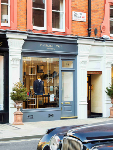 English Cut has chosen to retain its historic shop front and has added a touch of gilt in the details, including the signage, to convey an air of exclusivity.  A single bust displays one of the jackets in the window, which is surrounded on all sides by abstract frames - a single item of clothing is suspended within each frame.  It forms a nice visual merchandising touch that highlights the brand’s attention to detail.