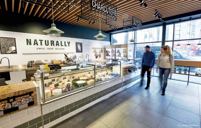We now cross to North London once again, to Holloway in the London Borough of Islington. It can often be difficult to discover creatively led convenience stores. I guess the clue is in the name – convenience doesn’t necessarily conjure up images of awesome interiors. Yet this year we have found two equally vibrant and stimulating grocery stores that deserve recognition. Both are extremely well designed and fabulously fitted out. On the Holloway Road, Naturally successfully combines a traditional grocery store with a delicatessen in a contemporary package that is executed with utter perfection. This delightful new store offers its customers a fresh bakery, charcuterie, cheese counter and a very novel approach to food shopping that has community at its heart.