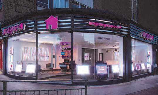 In early 2017 the Imagine Group commissioned OAD to design, build and deliver their fourth high street location in the centre of Hemel Hempstead in a tight five week schedule. The brief was to create an eye catching office that stood out and was like no other estate agent office on the high street. With the use of bright LED glass wall art panels and zebra wood laminated LED window poster units it was an office you could not fail to notice. The cased chrome fascia signage framed the office perfectly. The Imagine directors were over the moon with their most iconic and noticeable office, with the end result looking very much like the first proposed 3d visual from OAD. The complete project highlights are available to view online here: https://youtu.be/rfOkR8hNG2A