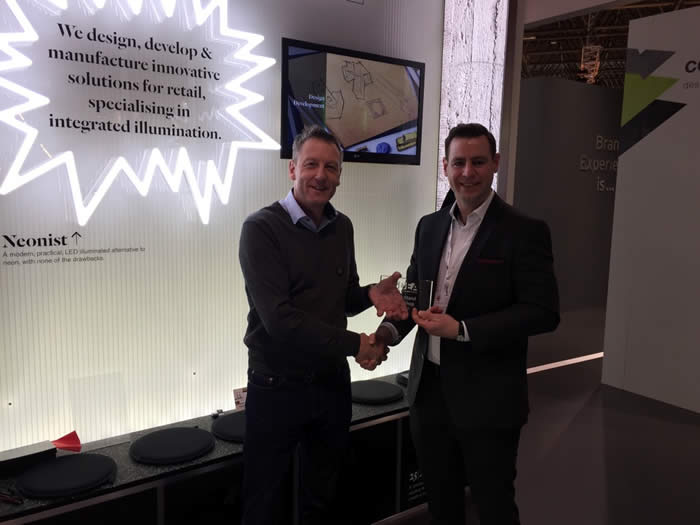 Retail display and lighting technology specialists, Unibox, faced stiff competition from many British and European companies exhibiting at the show. Alan Pegram, SDEA President and Managing Director of Global Display, was in no doubt that Unibox was a worthy winner. He commented, “All the stands were of a very high calibre but Unibox had the best use of space and clear messaging”.